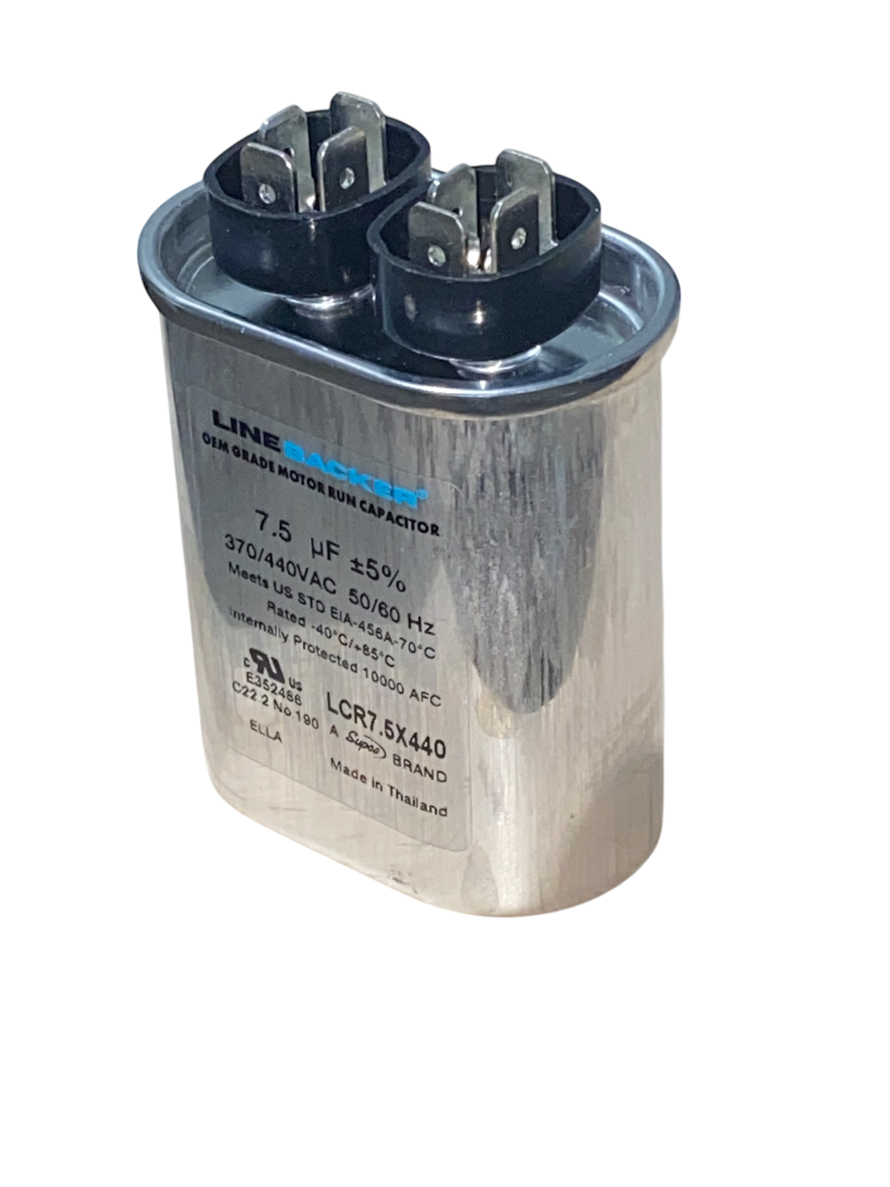 This Linebacker 7.5 MFD 370/440VAC capacitor is an excellent replacement choice for maintaining reliable system performance in residential and commercial HVAC equipment.