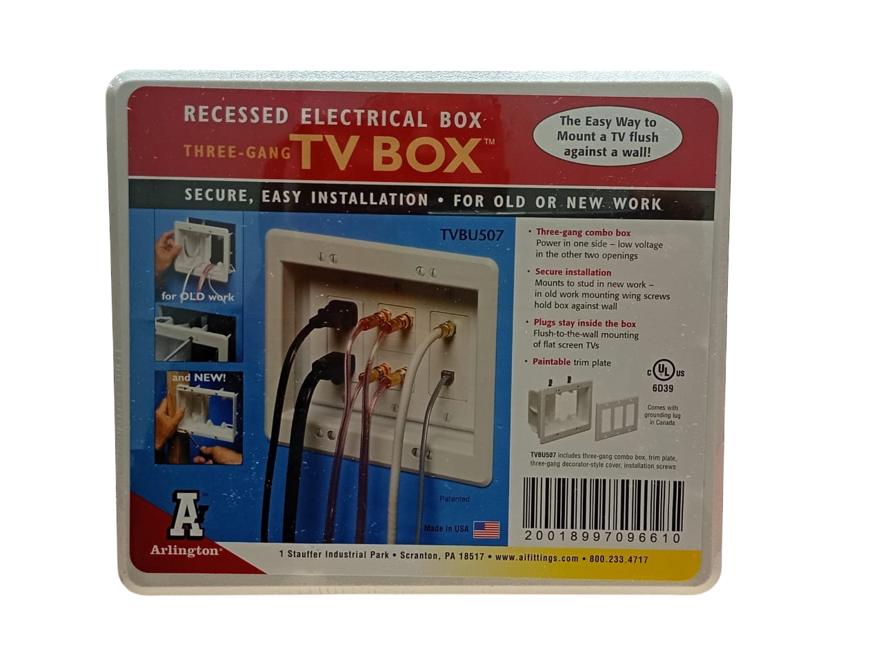 Triple Gang Recessed Electrical Box (White) | Arlington TVBU507GC